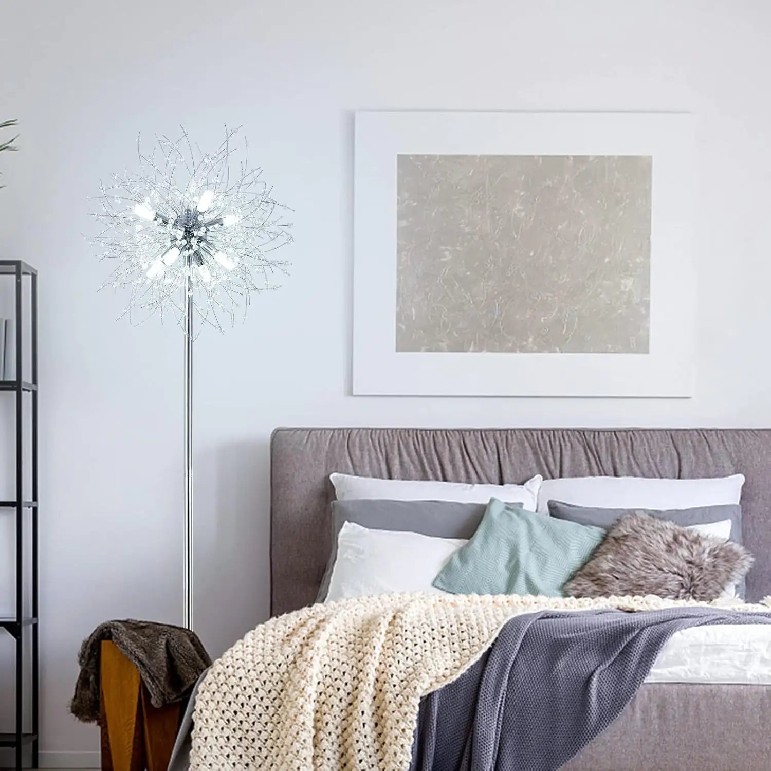Illuminate your space with elegance: Elevate your home decor with the Bedroom Crystal Floor Lamp from Welfel. Standing at an impressive 69 inches, this modern floor lamp features 32 dazzling fireworks crystal suspenders and a chic chrome finish, ensuring it catches the eye in any setting.